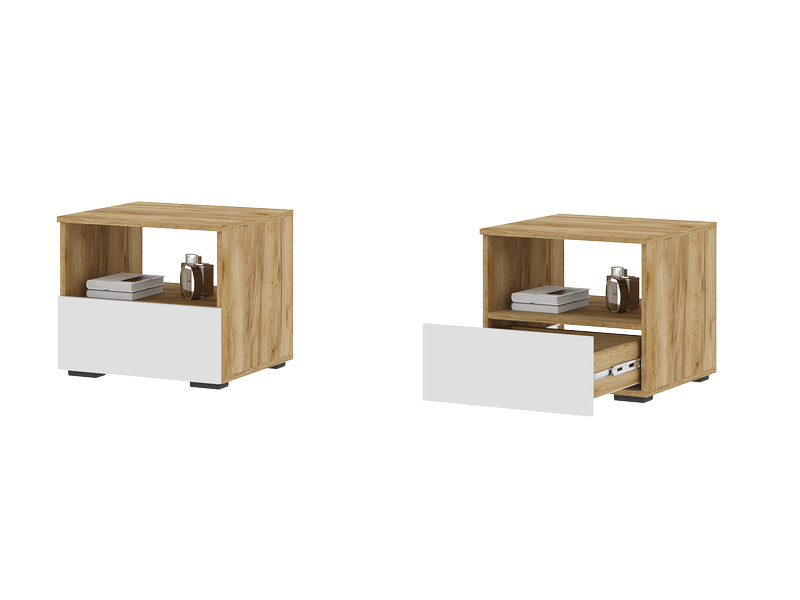 - Тумба прикроватная Хелен ТБ 01 Дуб Крафт золотой/Белый шагрень