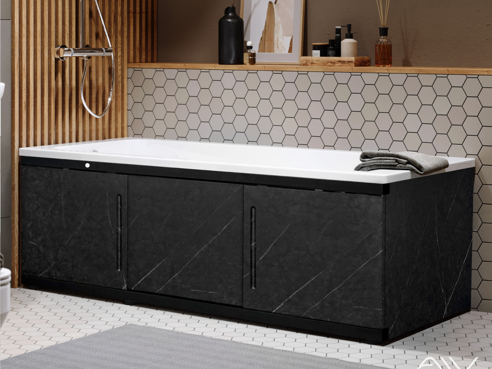 - Экран под ванну МДФ Alt Black 1500 мм черный мрамор