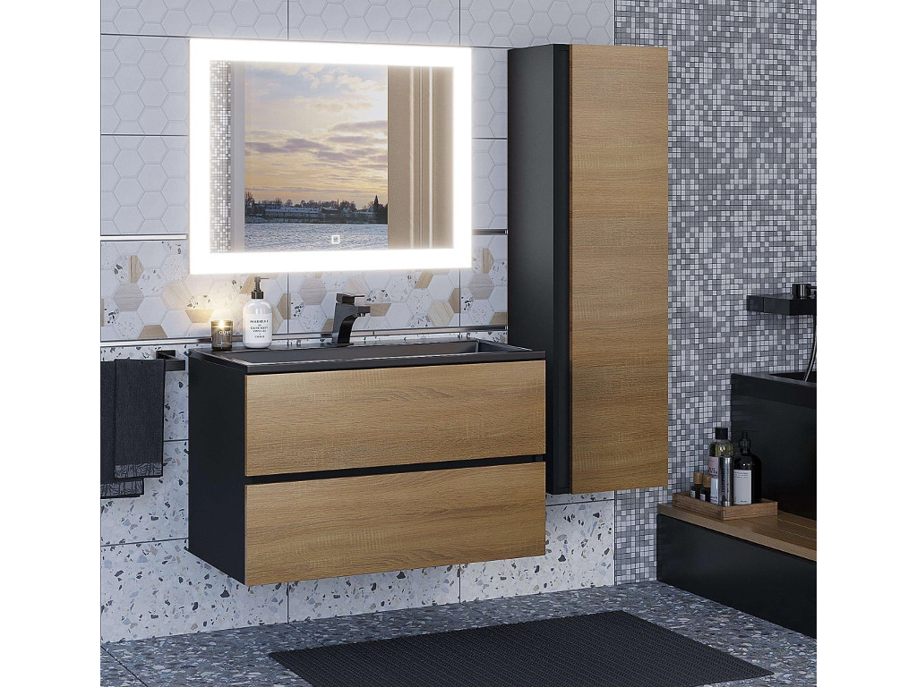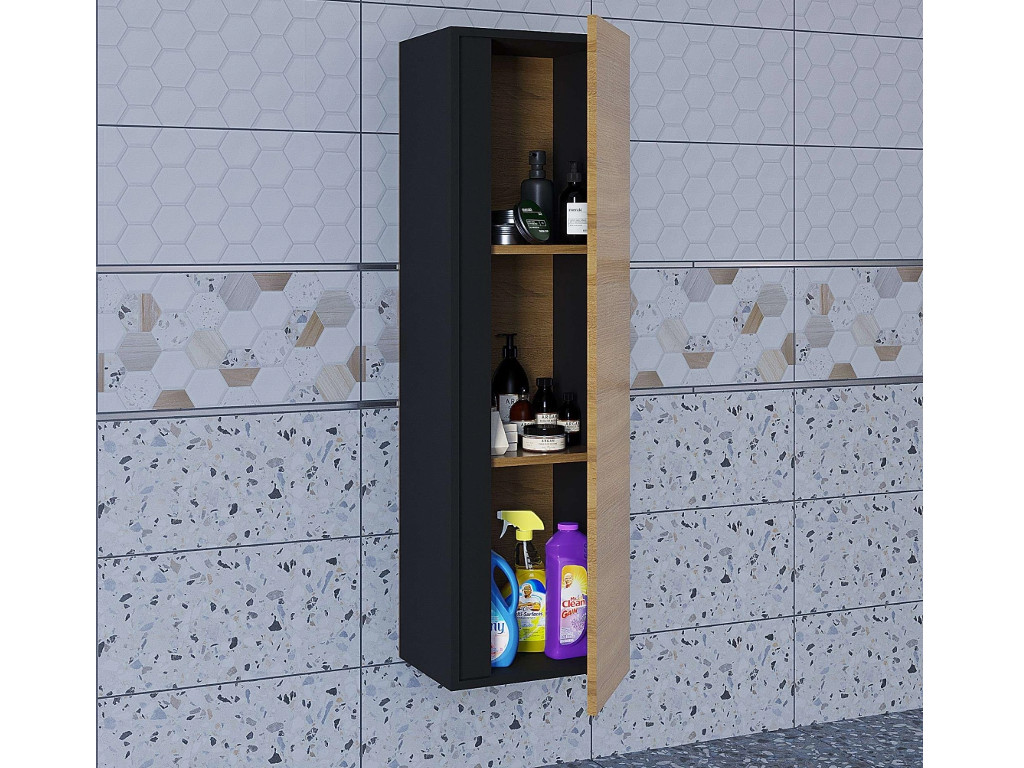 - Шкаф-пенал для ванной Uperwood Barsa подвесной черный/дуб сонома
