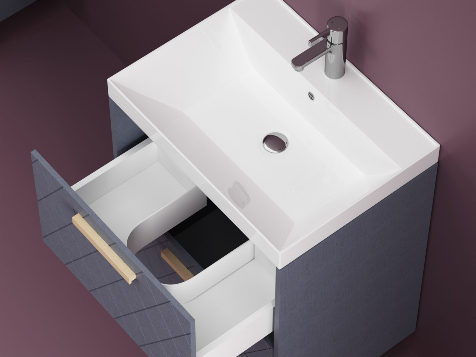 - Тумба Кристалл 60 напольная 2 ящика ручка дуб + ум Океан 60