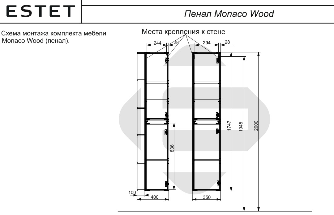 - Пенал подвесной Monaco Wood с открытой полкой правосторонний