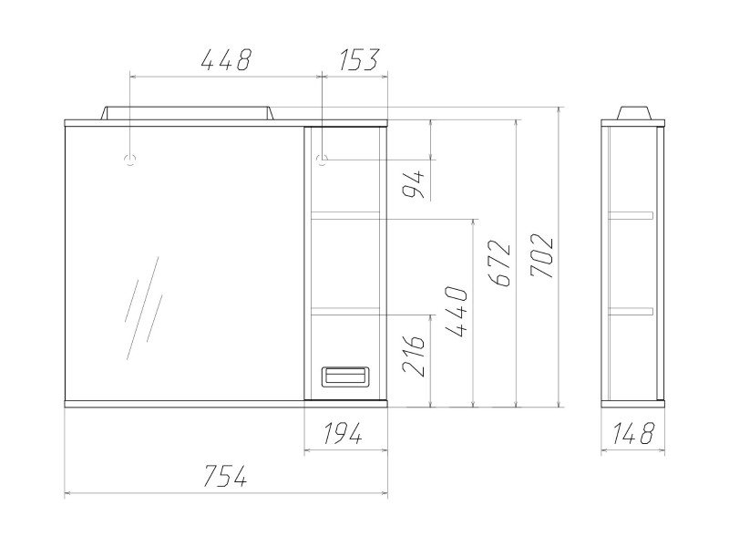 - Шкаф зеркало Cube Куб 75 правый