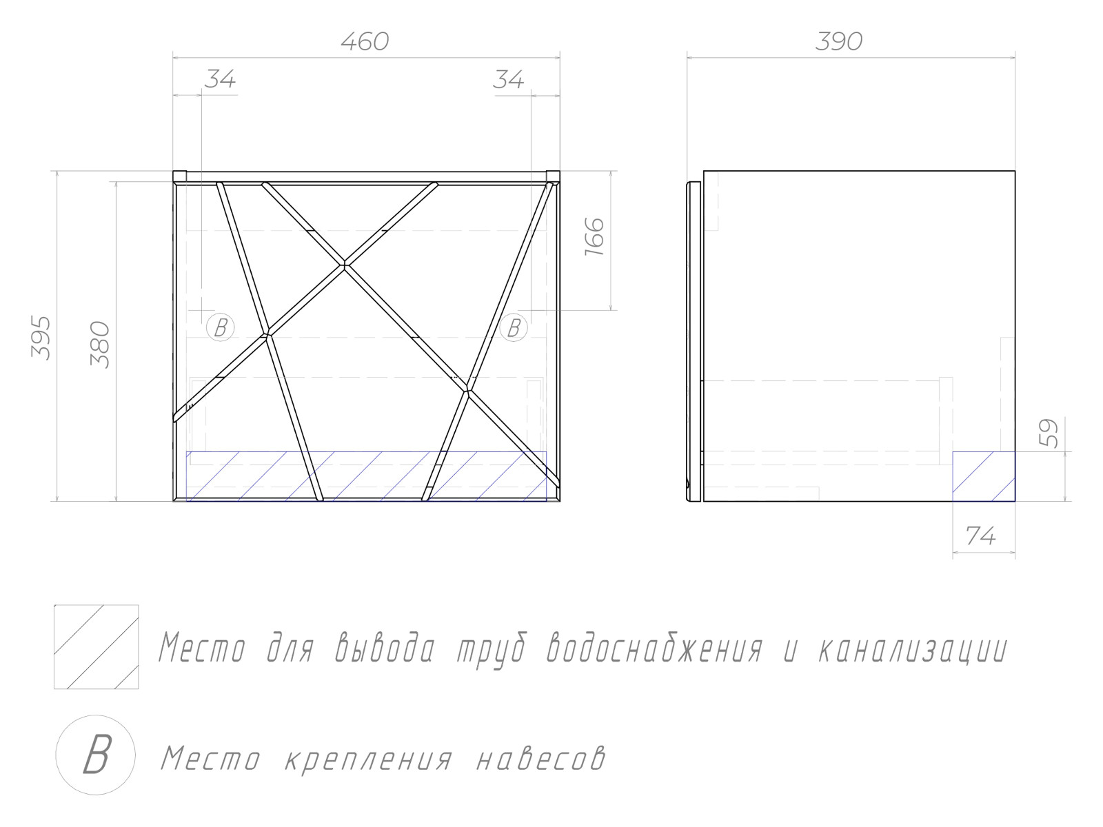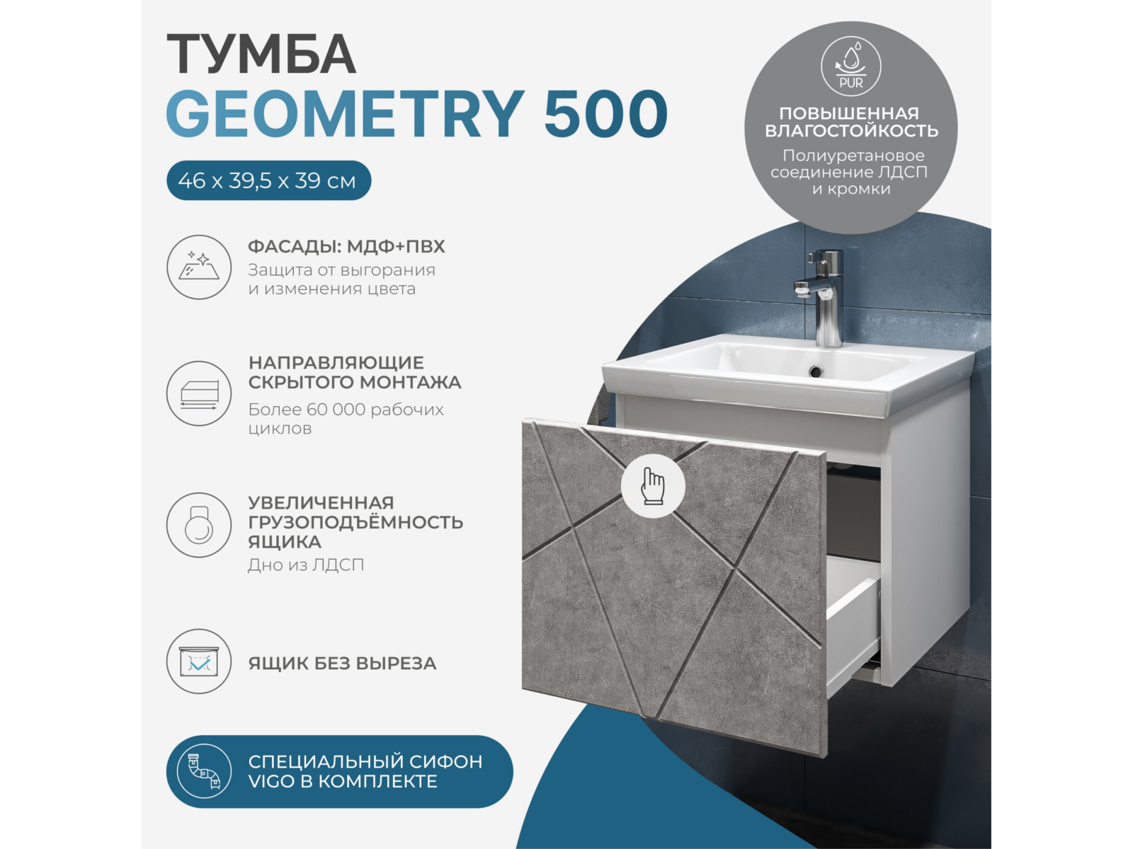 - Тумба Geometry 500-0-1 Como навесная бетон