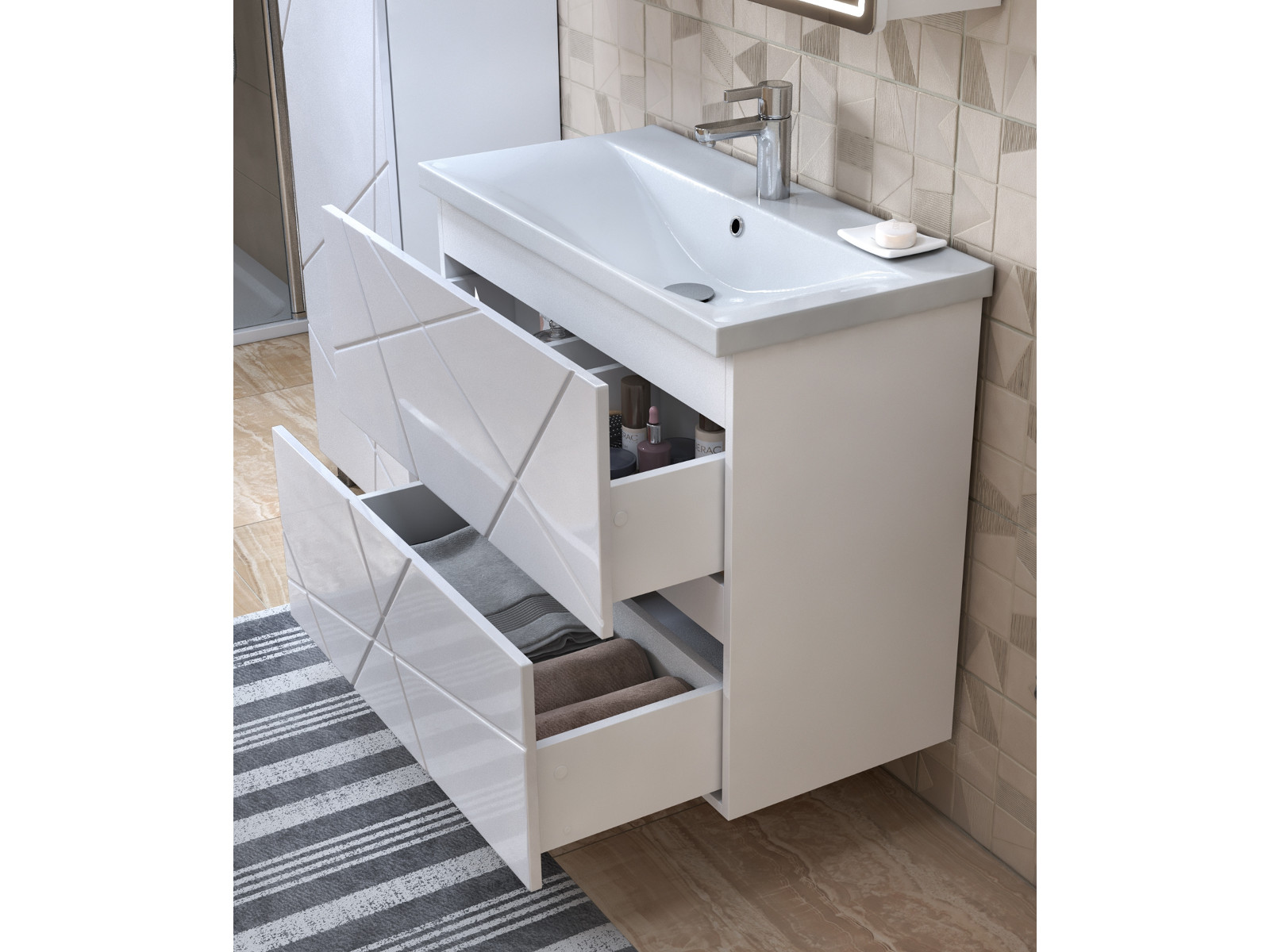 Тумба Geometry 800-0-2 умывальник 9696 белый