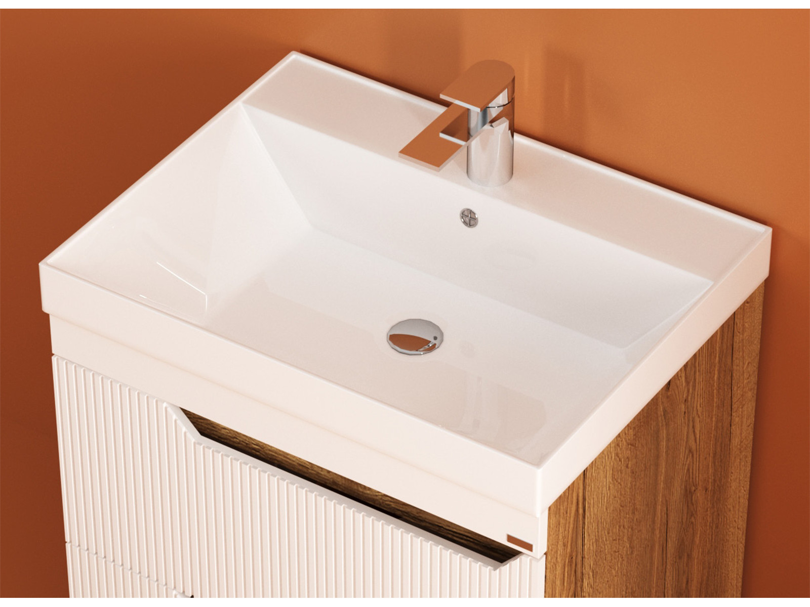 - Тумба Леон Риф 70 напольная 2 ящика раковина Слим 70 солярис/белый риф