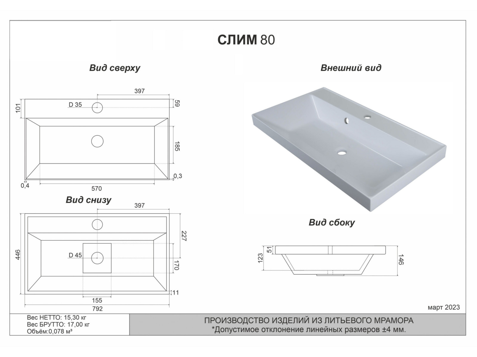 - Тумба Леон Риф 80 напольная 2 ящика раковина Слим 80 солярис/белый риф