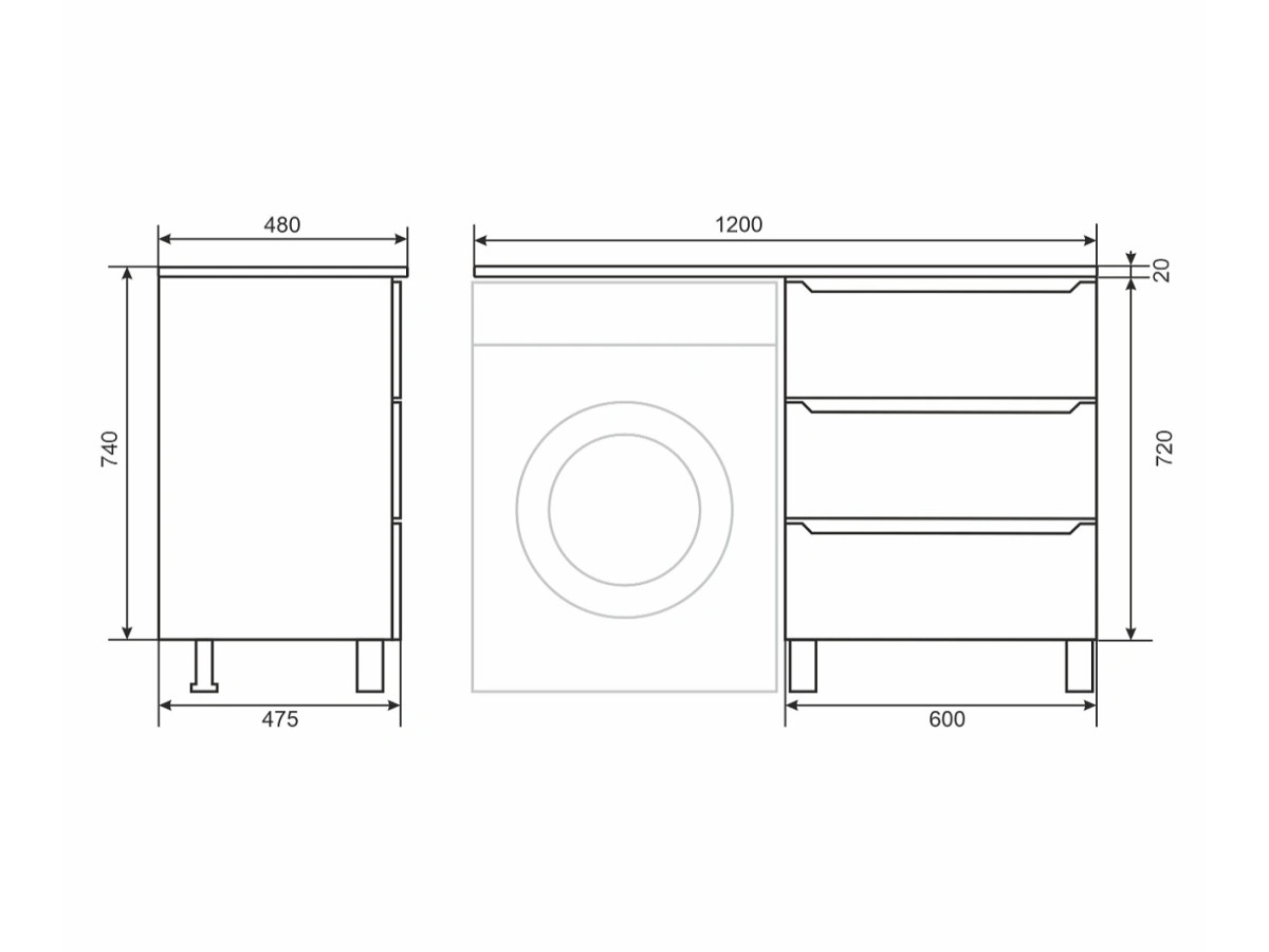 Тумба под стиральную машину Uperwood Tanos 60 см, напольная, 3 ящика, черная