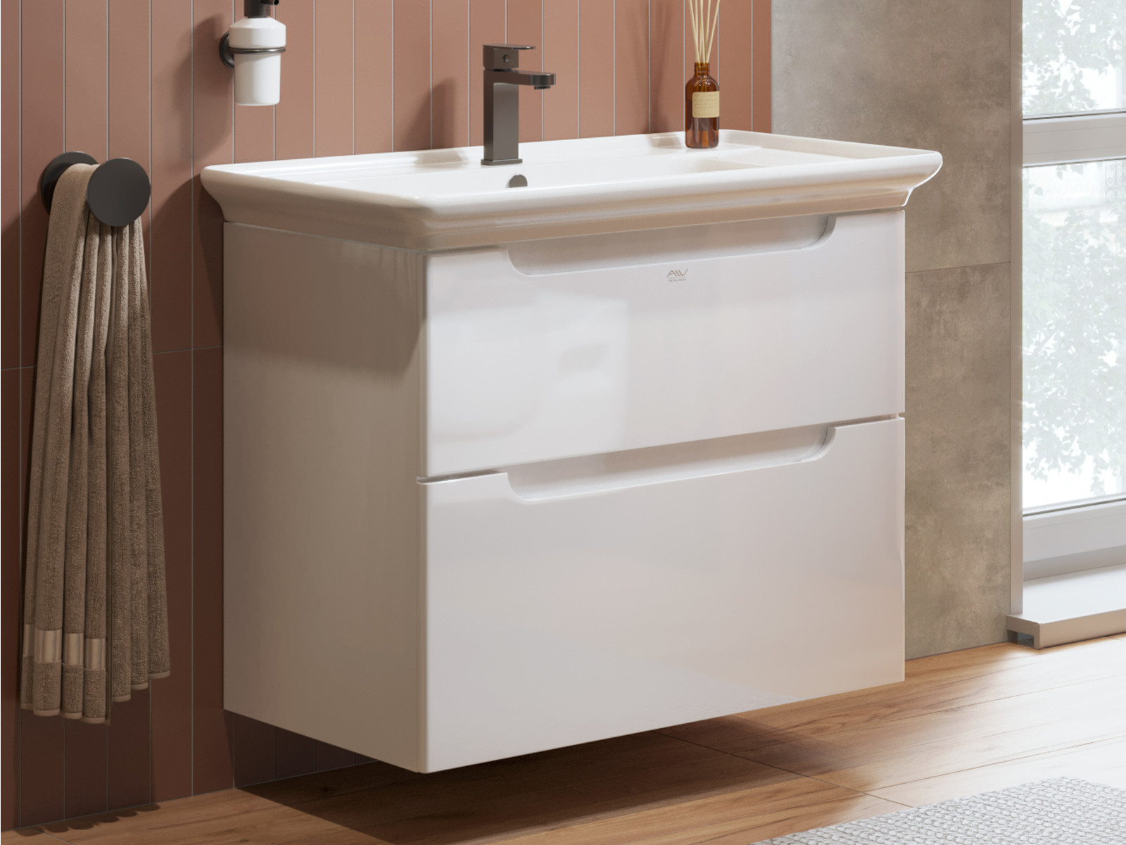 - Тумба с раковиной Berta 85 белая
