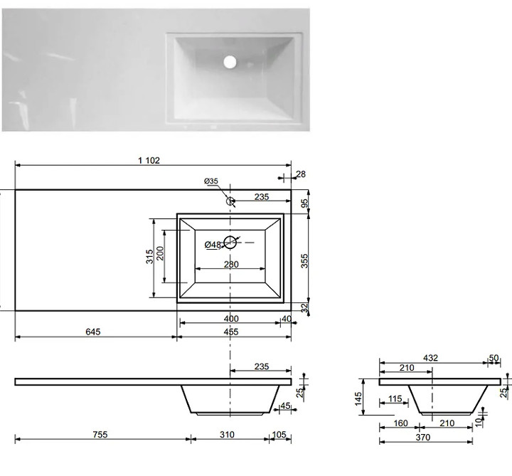- Тумба с раковиной Dallas Luxe 1150 напольная 3 ящика правая