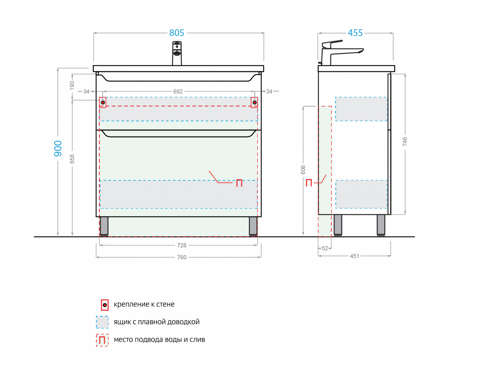 - Механизм ящиков: С доводчиком (плавное закрывание)