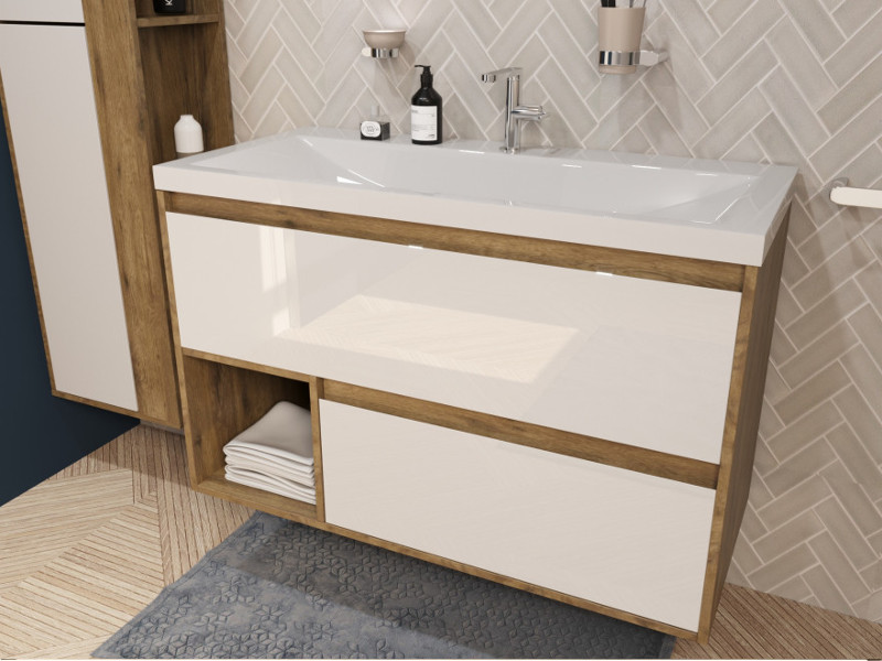 - Тумба с раковиной Monaco Wood 1000 2 ящика с нишей