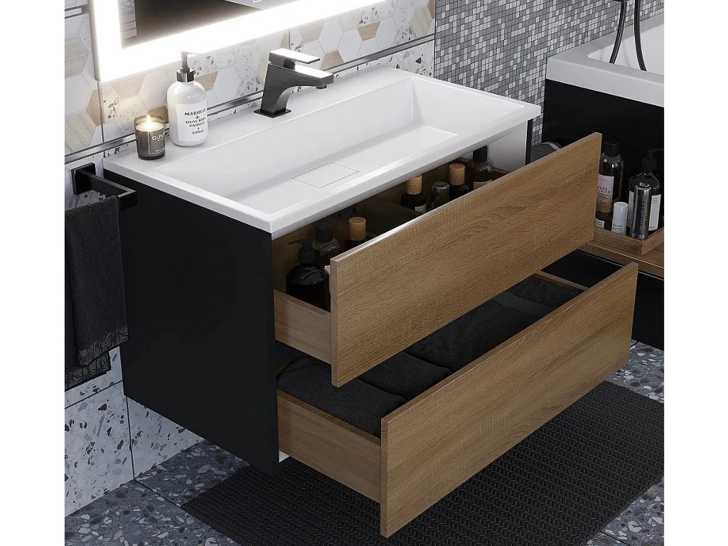 - Тумба с раковиной Uperwood Barsa 80 см раковина белая-тумба черная/дуб сонома