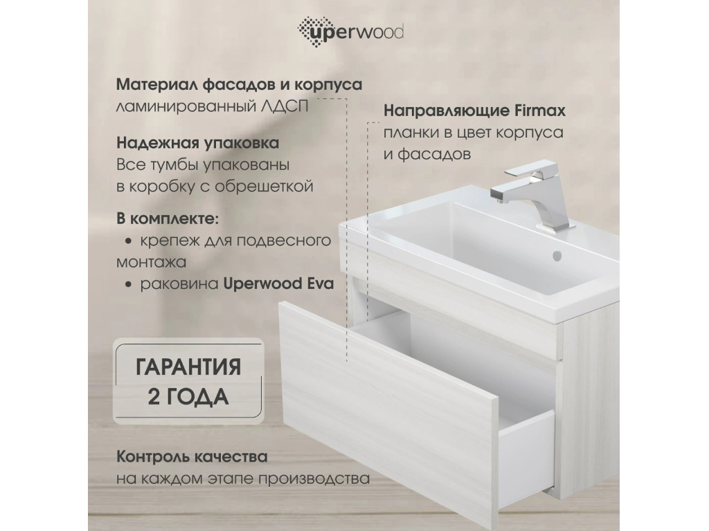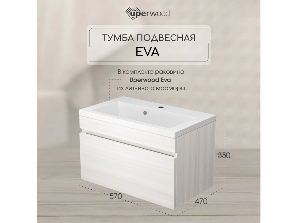 - Тумба с раковиной Uperwood Eva Дуб Харбор белый 60 см