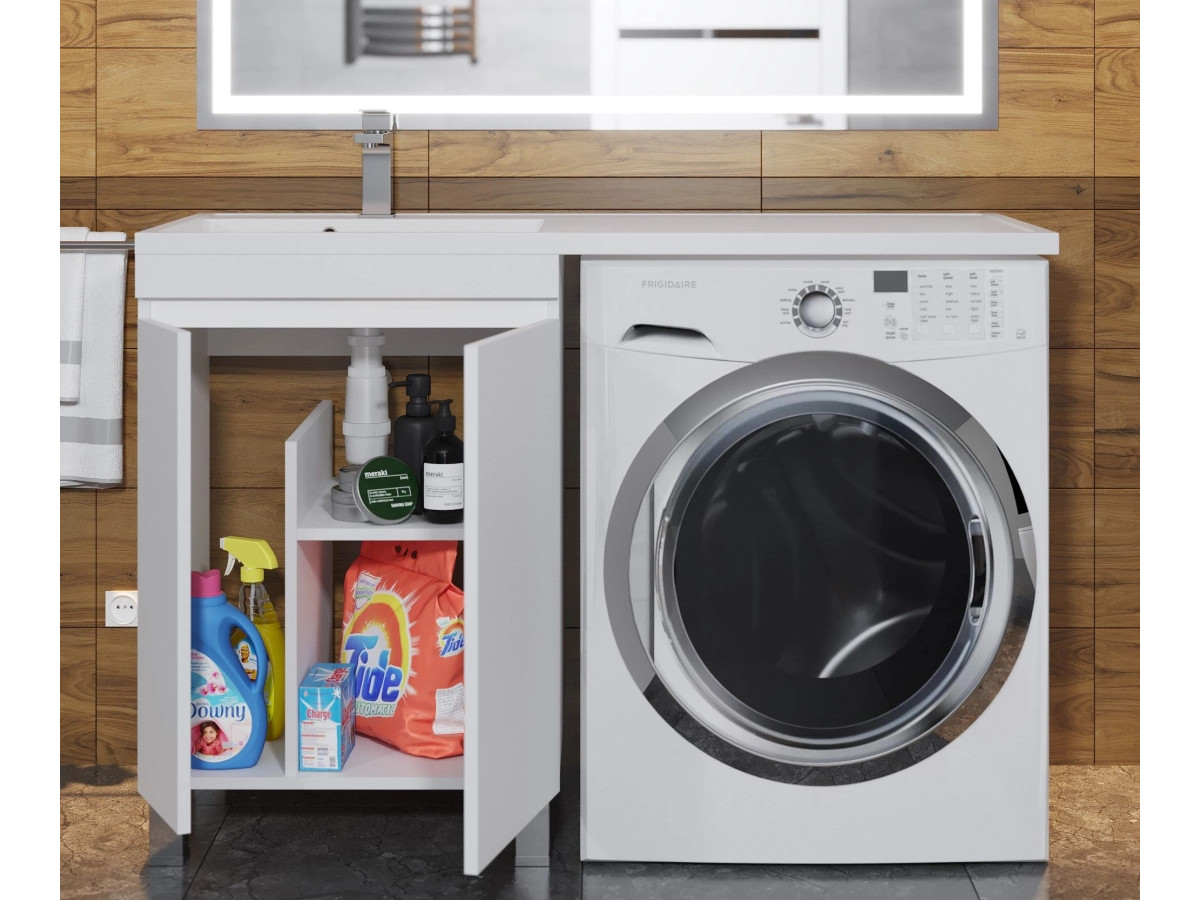 - Тумба с раковиной Uperwood Magenta 60-120 см напольная белая с дверцами левая