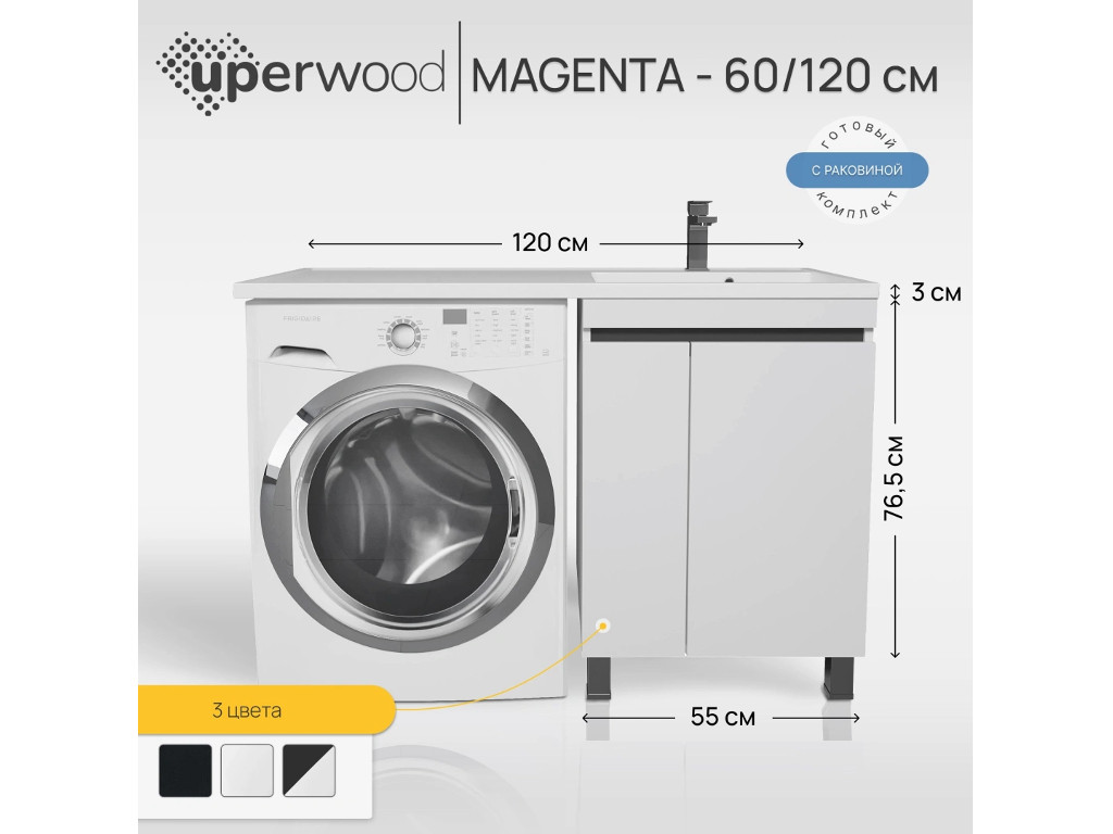 - Тумба с раковиной Uperwood Magenta 60-120 см напольная белая/графит с дверцами правая