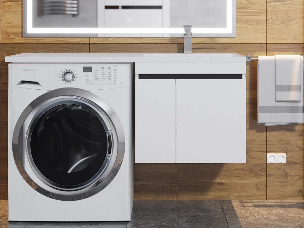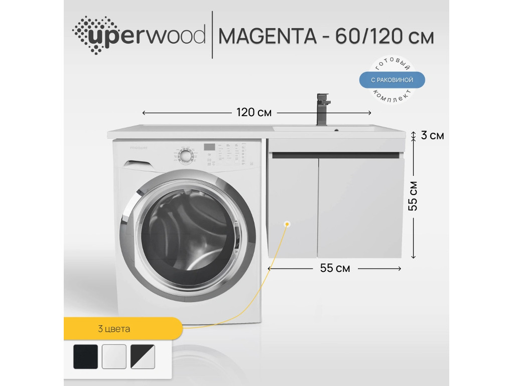 - Тумба с раковиной Uperwood Magenta 60-120 см подвесная белая/графит с дверцами правая
