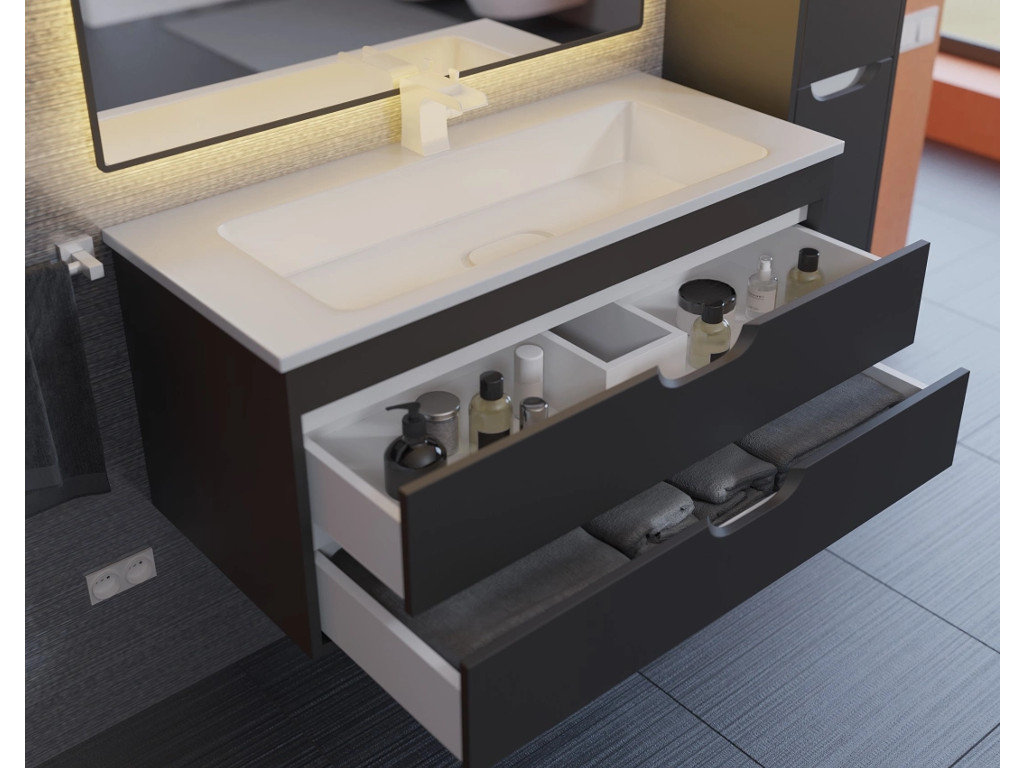 - Тумба с раковиной Uperwood Modul матовая черная 100 см
