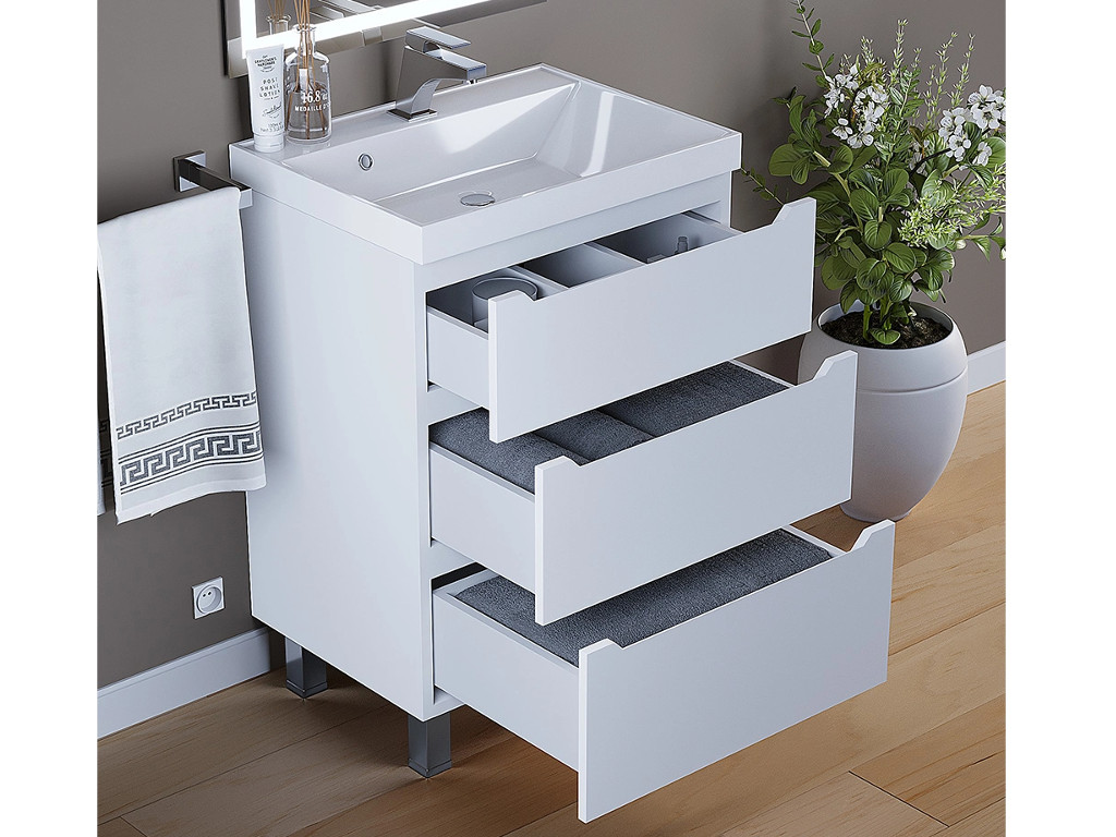 - Тумба с раковиной Uperwood Tanos 3 ящика напольная 60 см белая