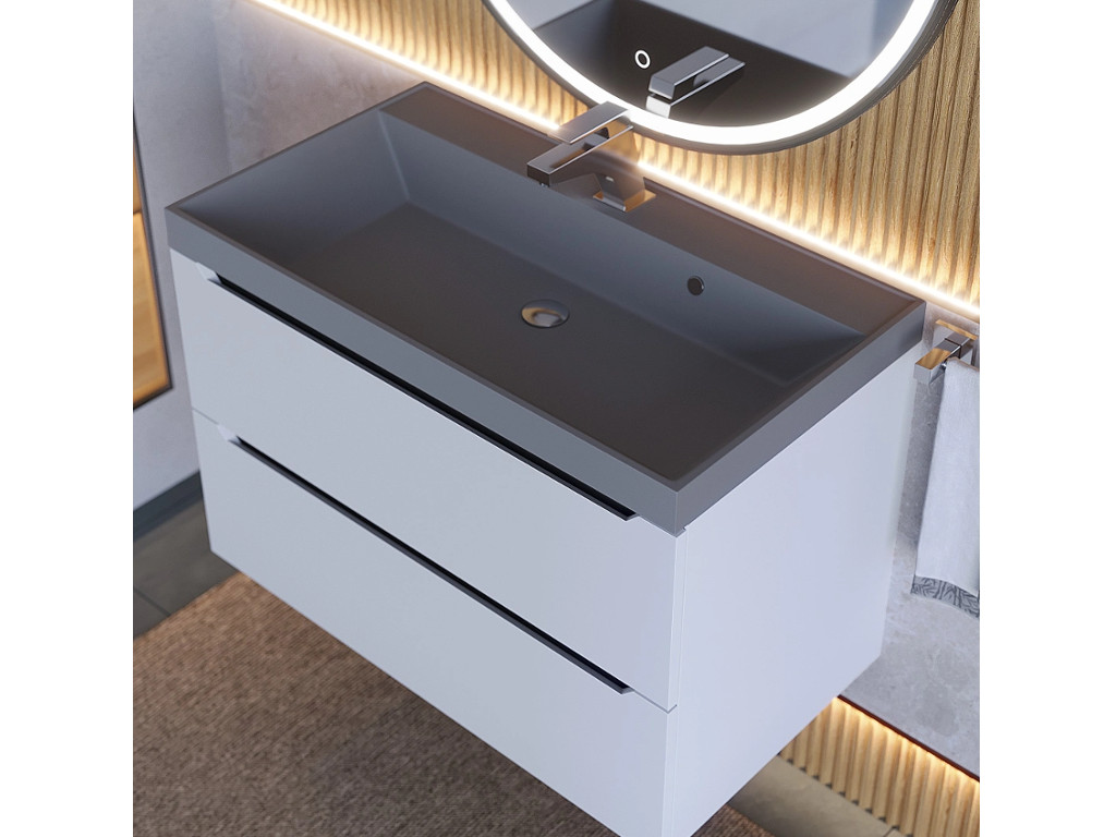 Тумба с раковиной Uperwood Tanos-Classic Quartz белая графит/бетон 80 см