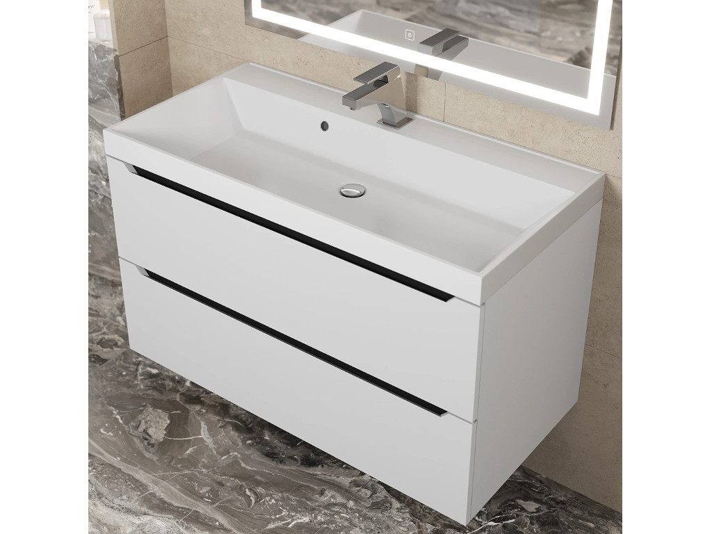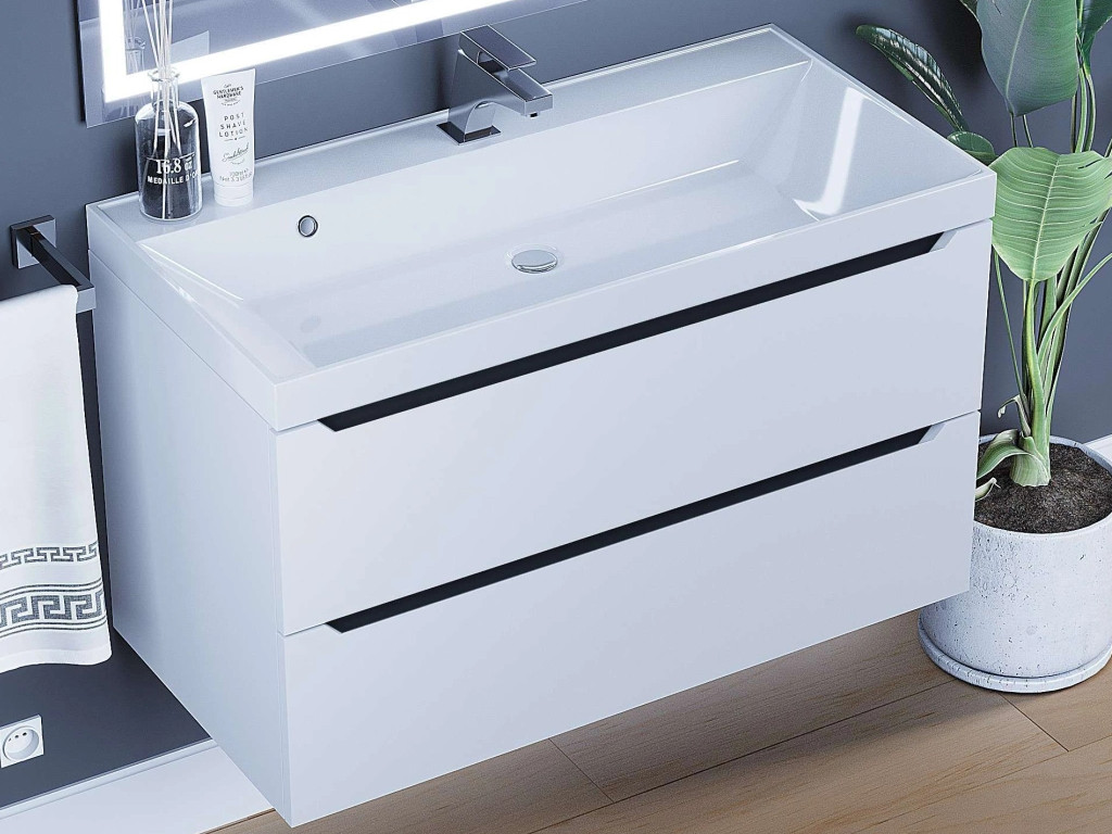- Тумба с раковиной Uperwood Tanos матовая белая/графит 90 см
