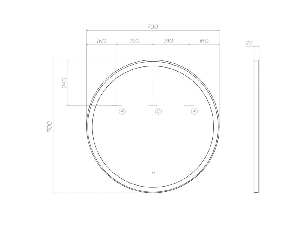 Подсветка фронтальная по периметру, с цветовой температурой 5000К – нейтральный белый, управление подсветкой бесконтактный выключатель «на взмах»