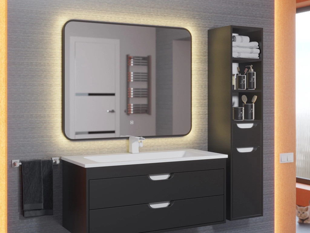 Зеркало Uperwood Modul черное теплая подсветка 80х80 см