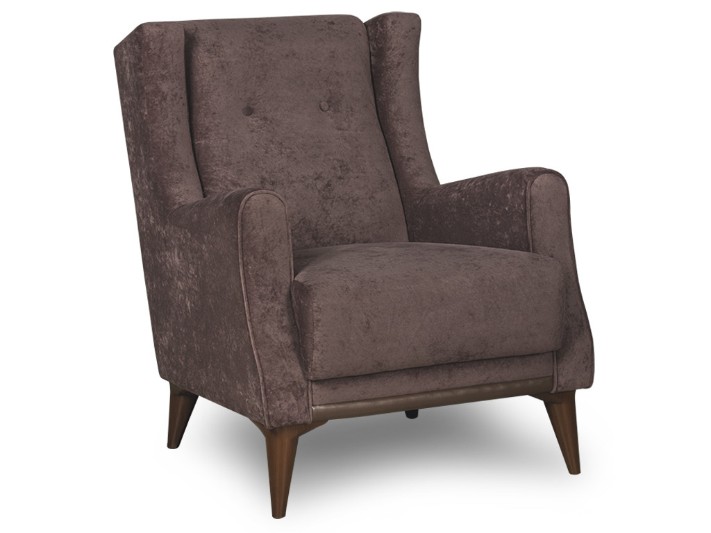 Декор: Декоративный кант из основной ткани по переднему торцу подлокотника; Утяжка спинки на 2 декоративные пуговицы из основного материала; Декоративный элемент царги из материала-компаньона.