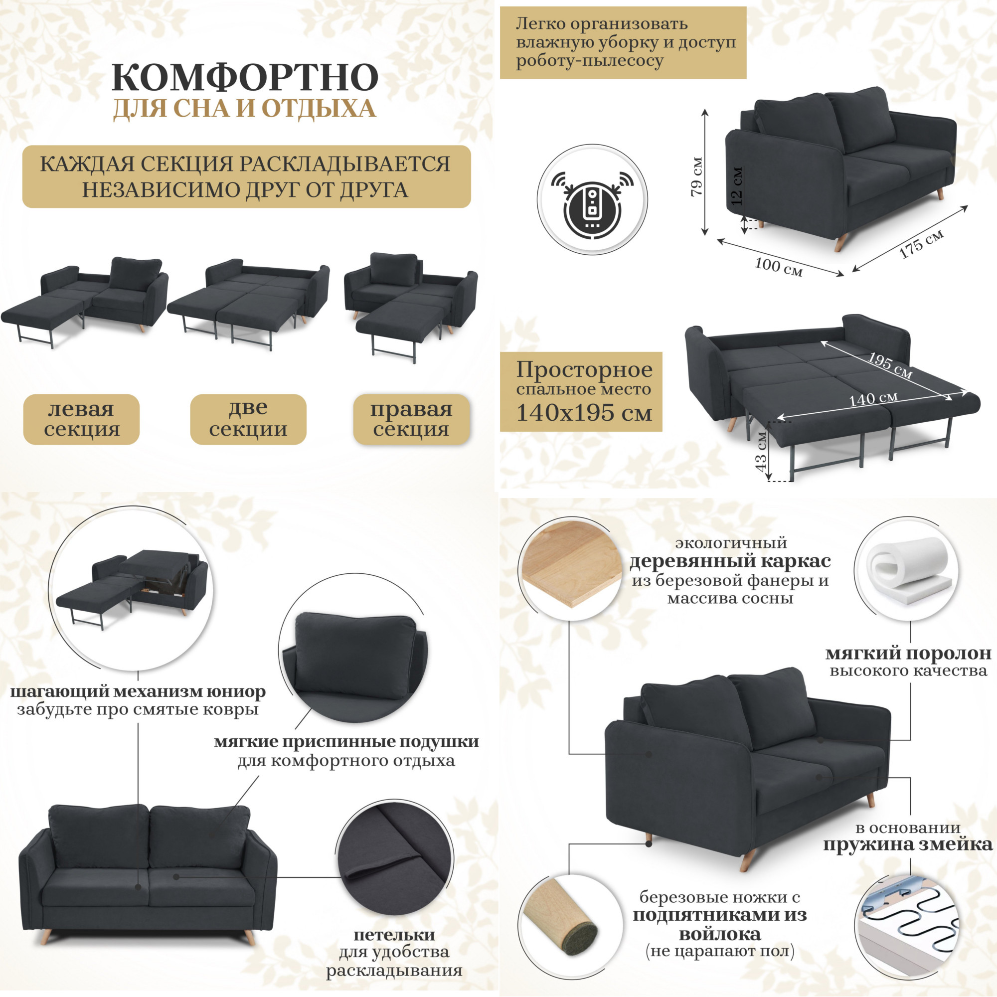 - Спальное место: 1400х1950мм