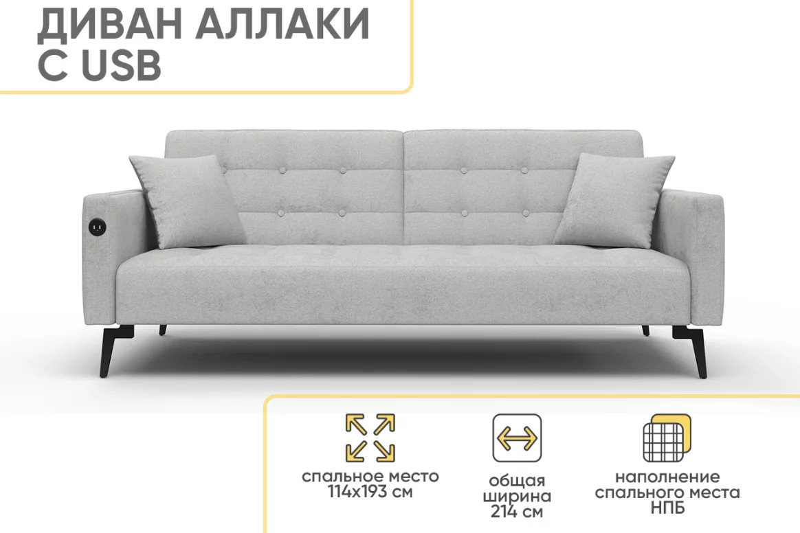 - Диван Аллаки с USB розеткой Серый Tailor 7