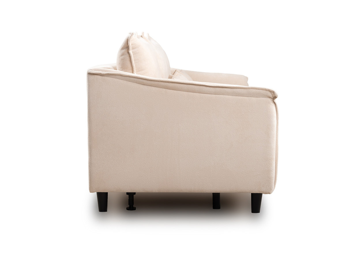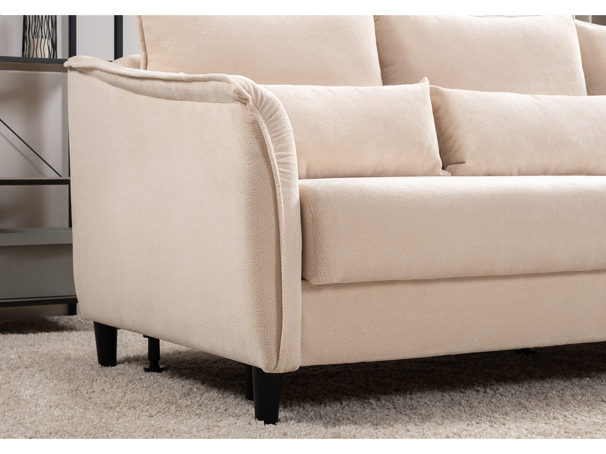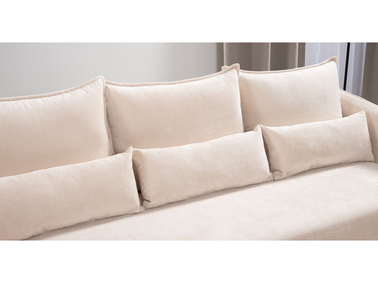 Спинка с тремя приспинными подушками. Две подушки трапецивидной формы, центральная квадратной формы на молнии, по трем сторонам которых проложена отделочная строчка на 1,2 см. По контуру боковин проложен декоративный кант на 1,2 см из основной ткани. Кант проходит по центру передней части боковины, а по внутренней верхней части сборка.