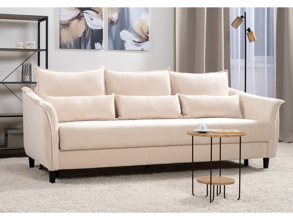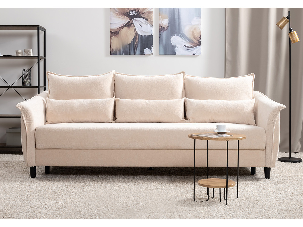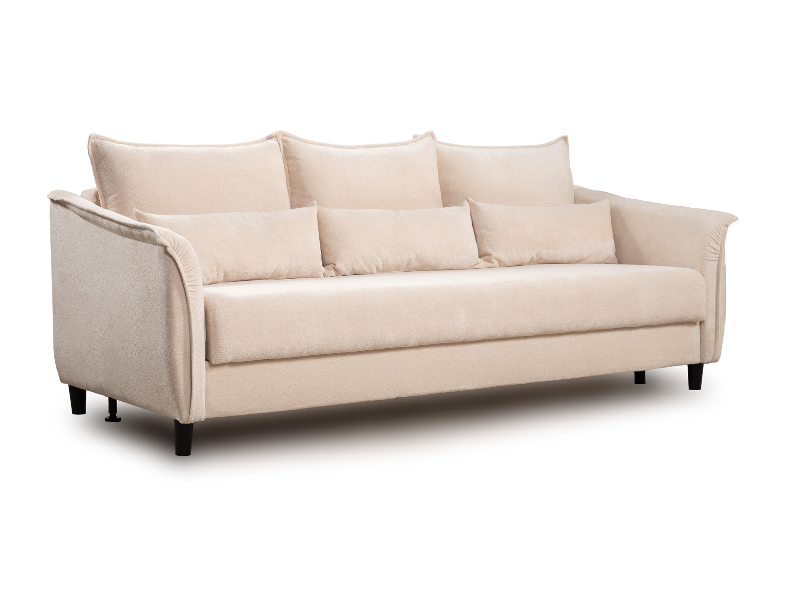 Спинка с тремя приспинными подушками. Две подушки трапецивидной формы, центральная квадратной формы на молнии, по трем сторонам которых проложена отделочная строчка на 1,2 см. По контуру боковин проложен декоративный кант на 1,2 см из основной ткани. Кант проходит по центру передней части боковины, а по внутренней верхней части сборка.