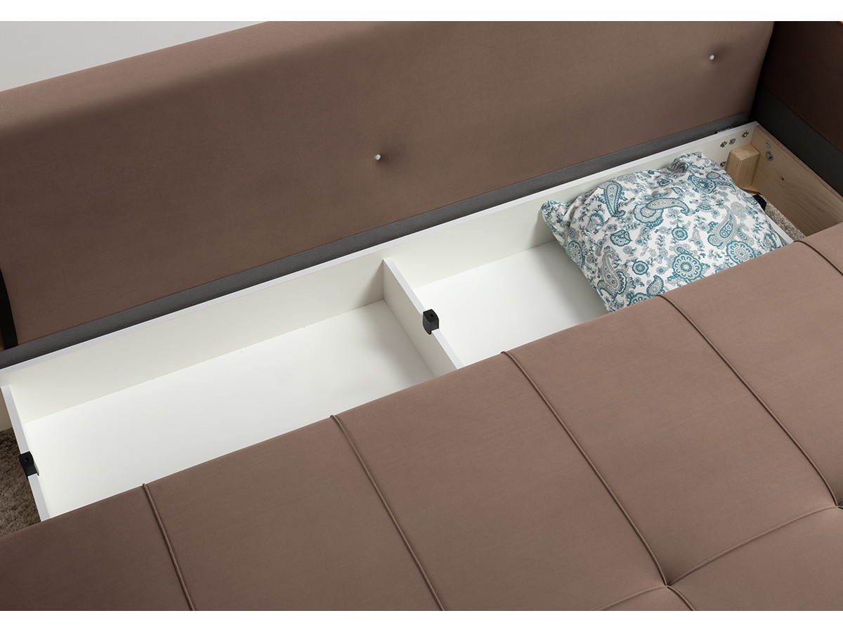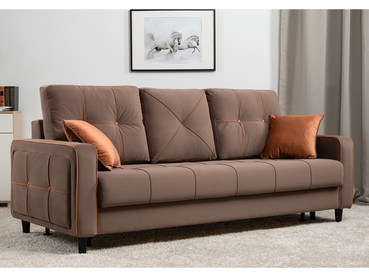 - По торцам подлокотников и думках контрастный декоративный кант.