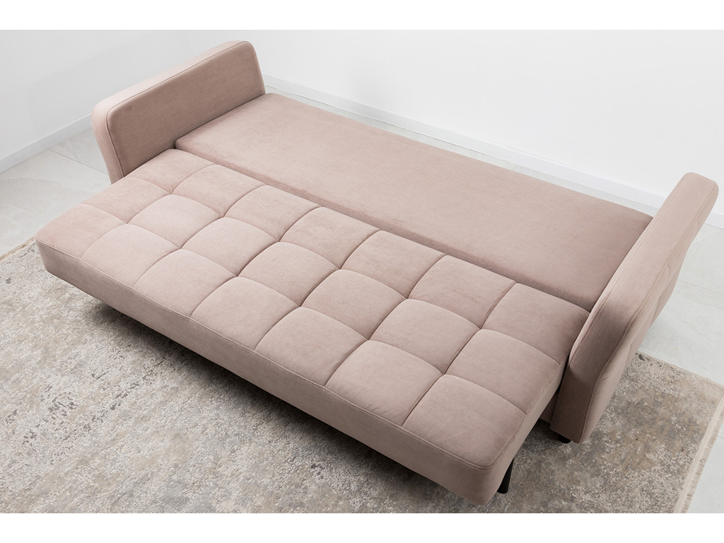 Ровная отстрочка по всему периметру сидения и стежка? создающая эффект пышности выделенных форм. Подлокотники прямые с изгибом в наружные стороны, с выраженной стежкой по лицевой стороне. Стежка на посадочной части дивана.