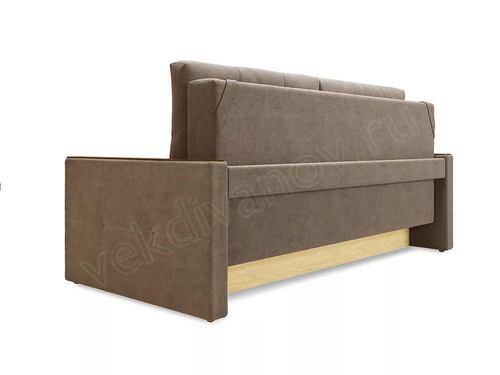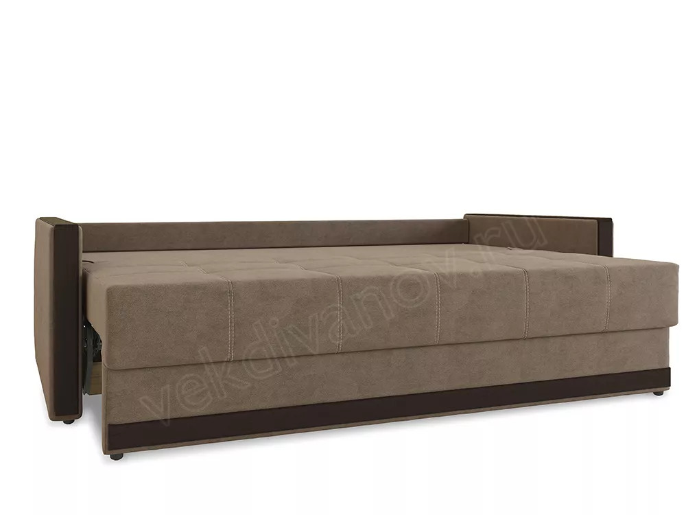 Наполнитель: в основании спального места независимый пружинный блок с дополнительным многослойным покрытием: термовойлок, высокоэластичный пенополиуретан, синтепон; подушки спинки имеют внутренний чехол, наполнитель комбинированный, гипоаллергенный пух «комфорель» с пенополиуретановой крошкой. Накладки – МДФ цвета венге.