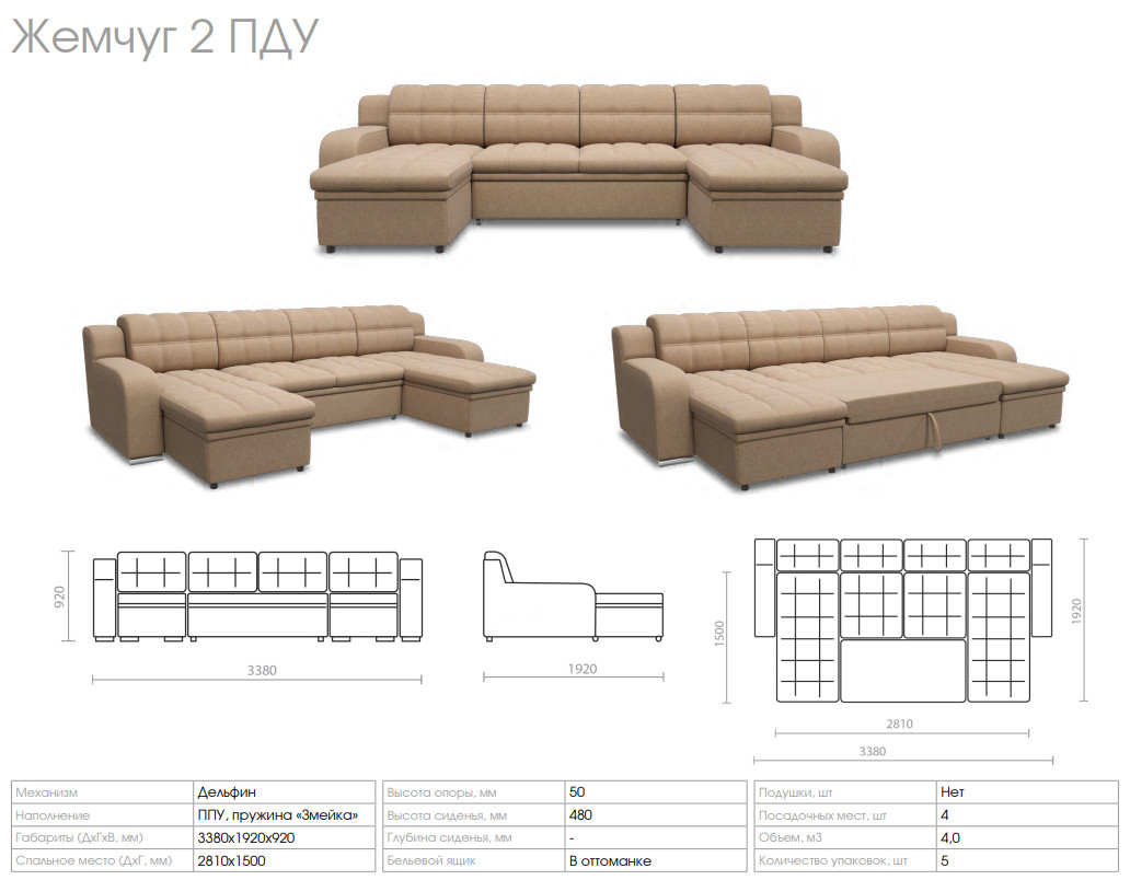 Диван Жемчуг 2 ПДУ