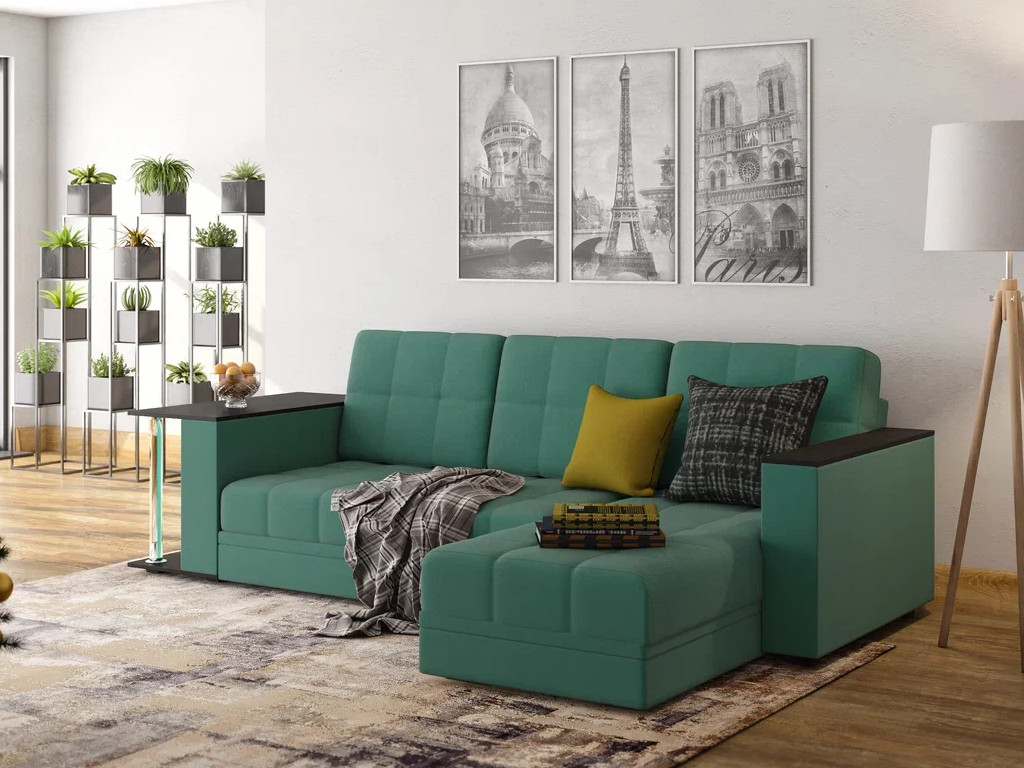 - Диван угловой Атлант со столиком велюр Neo 23 грин зеленый