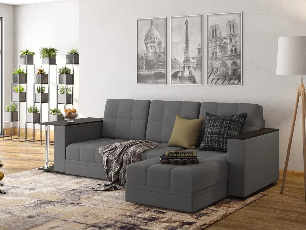 - Диван угловой Атлант со столиком велюр Neo 26 графит темно-серый