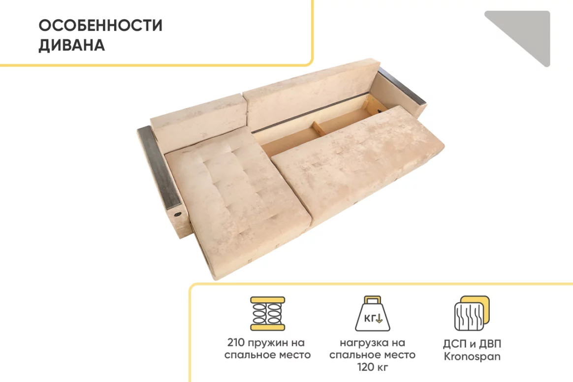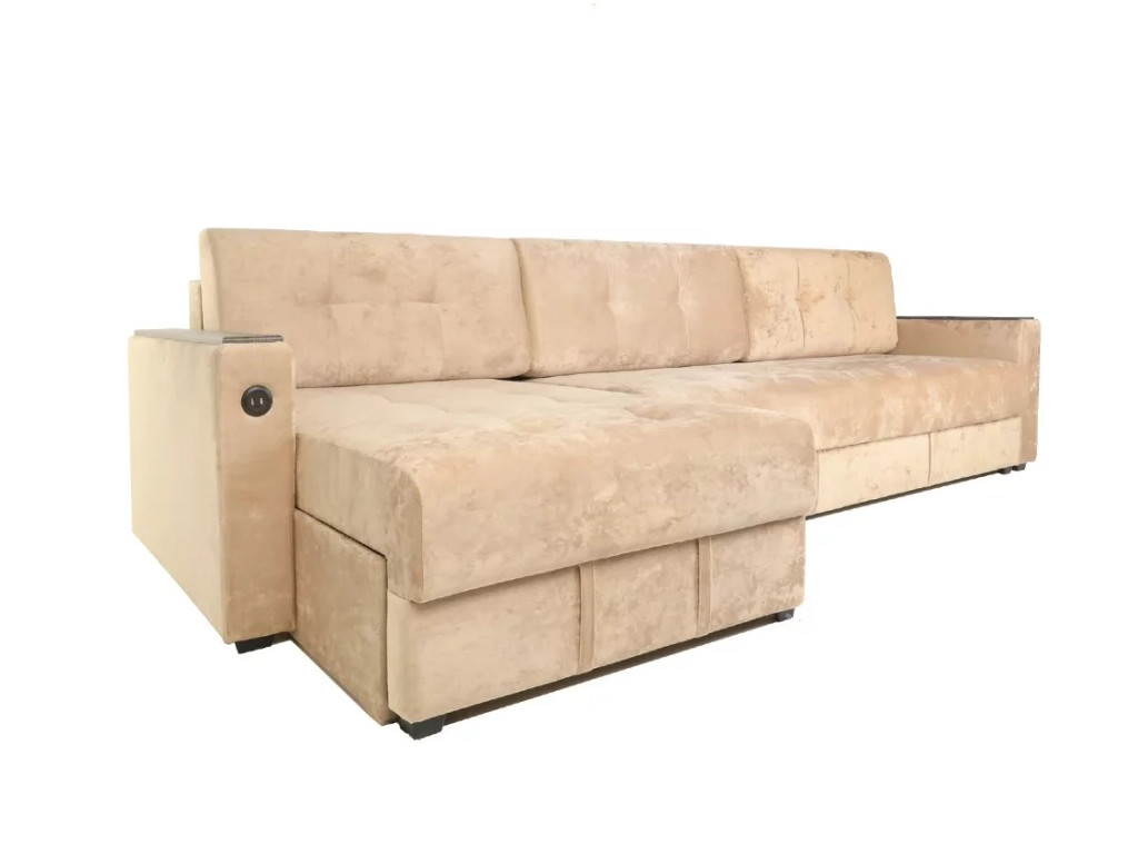- Диван угловой Тургояк c USB розеткой Бежевый Ocean 130