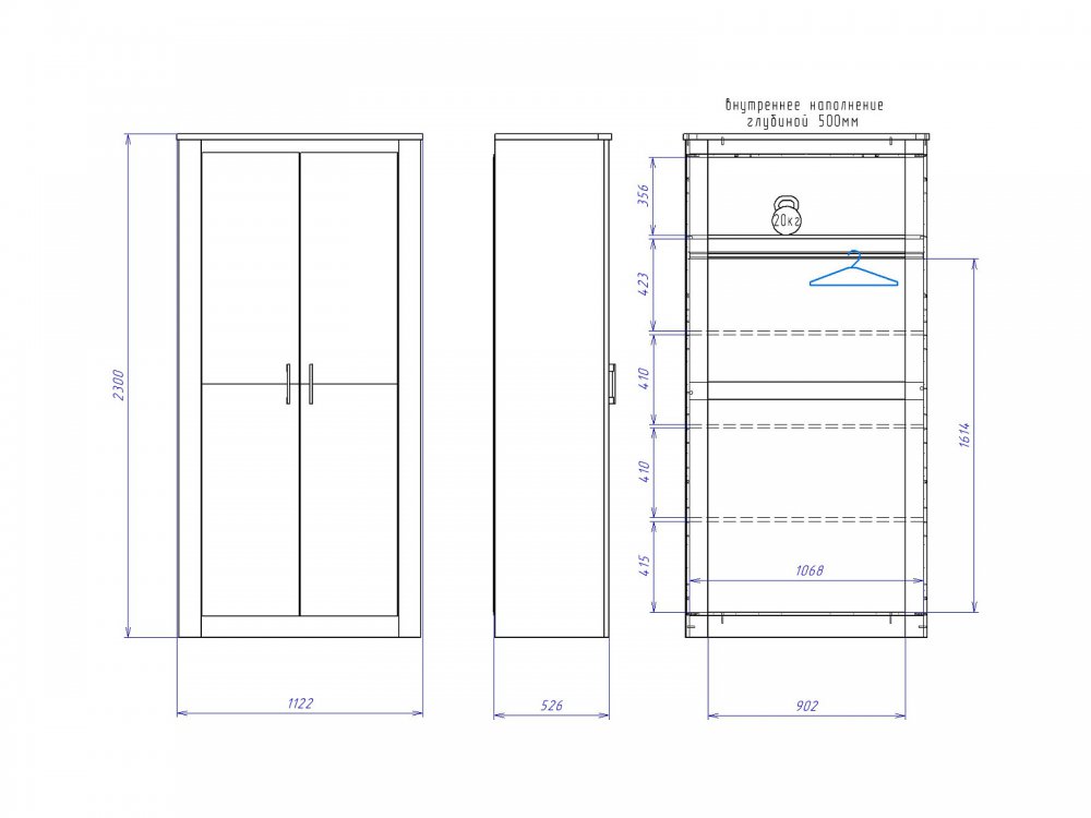 Размер ШхГхВ: 1122*538*2300 мм