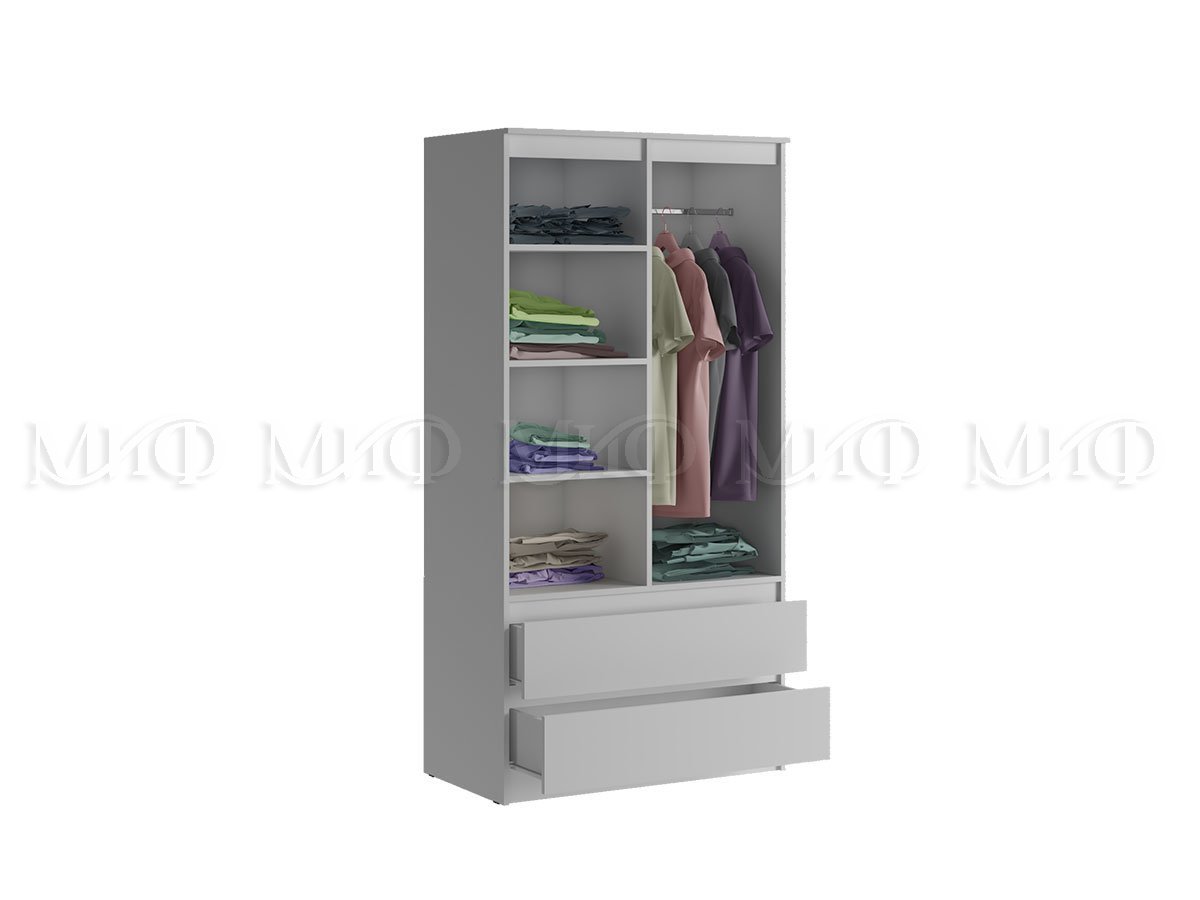 - Шкаф 2-х створчатый комбинированный с антресолью 900 Челси Белый