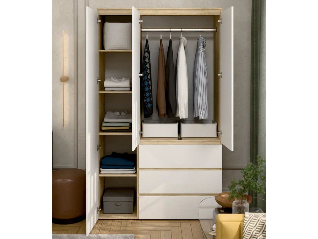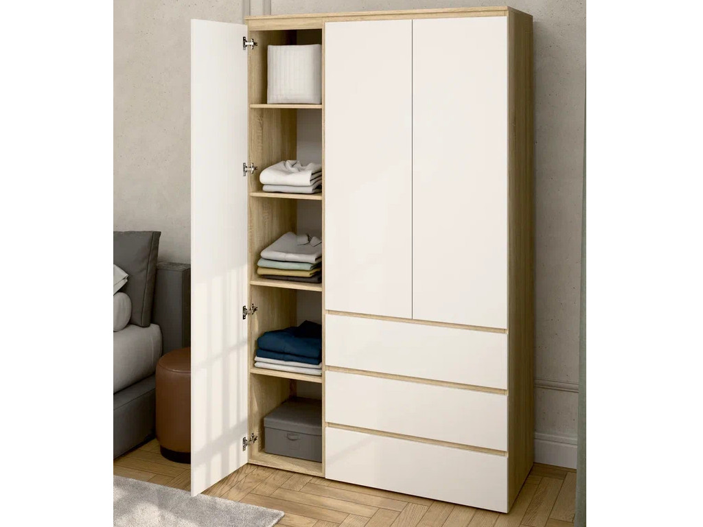 Шкаф 3-хстворчатый с 3-мя ящиками Прайм сонома/белый