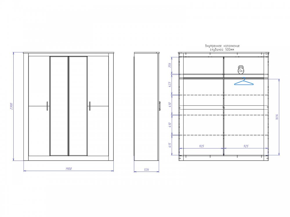 Шкаф 4-х дверный 2300 Денвер Риббек серый