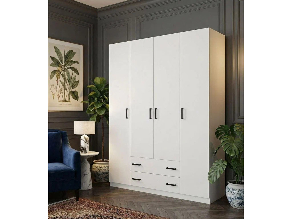 - Шкаф 4-хстворчатый с ящиками Турин белый