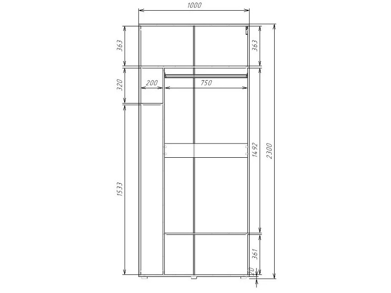 - Шкаф бытовой с 1 штангой Гранд ГШБ/1-23-10-33