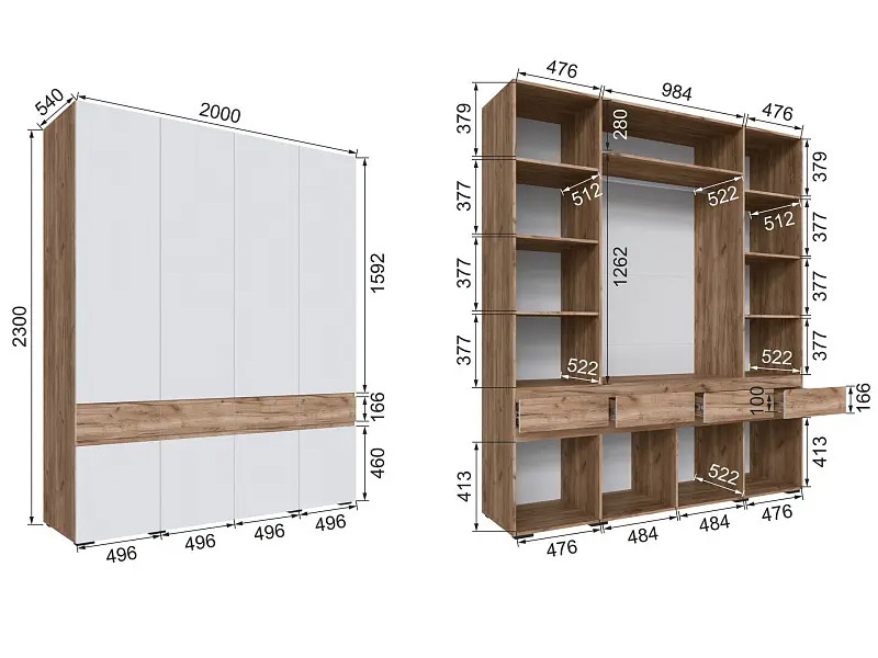 Шкаф четырехдверный Мерида дуб крафт табачный/белый