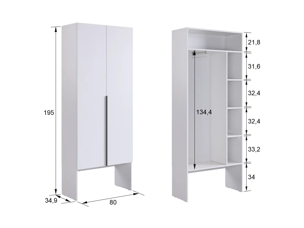 - Шкаф двухдверный L800 Баско белое дерево