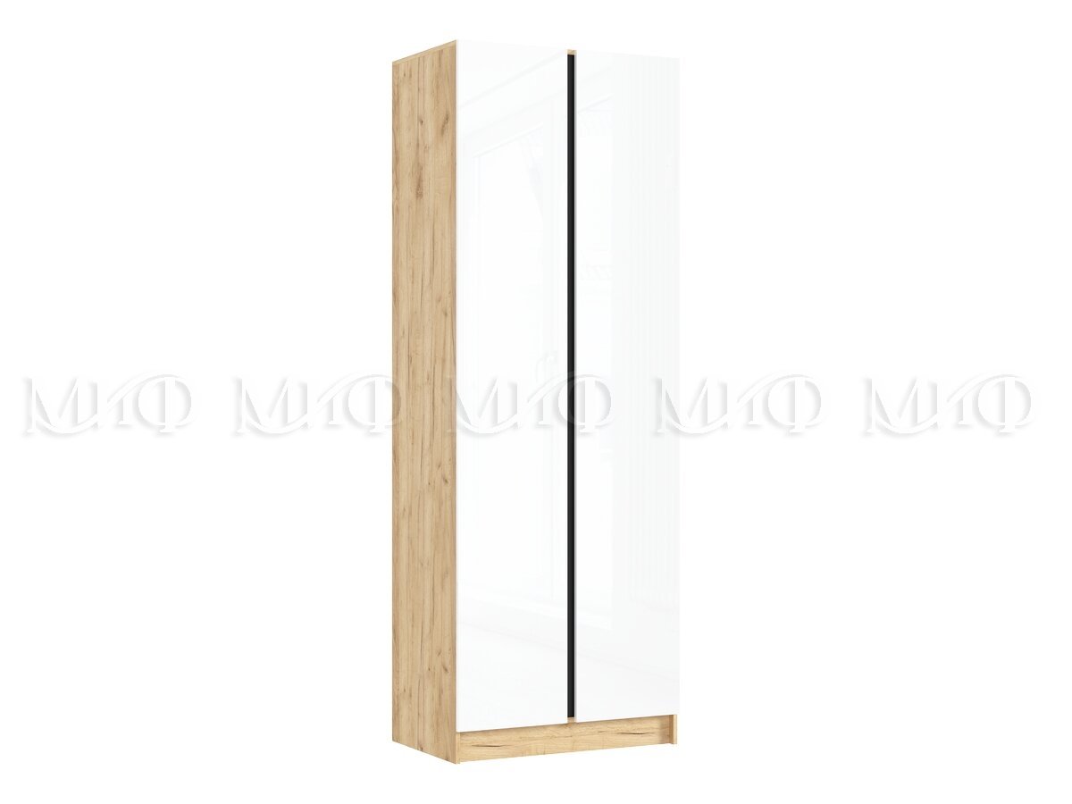 Шкаф двухстворчатый Келвин (800) Белый Глянец, Дуб Крафт-вставка черная