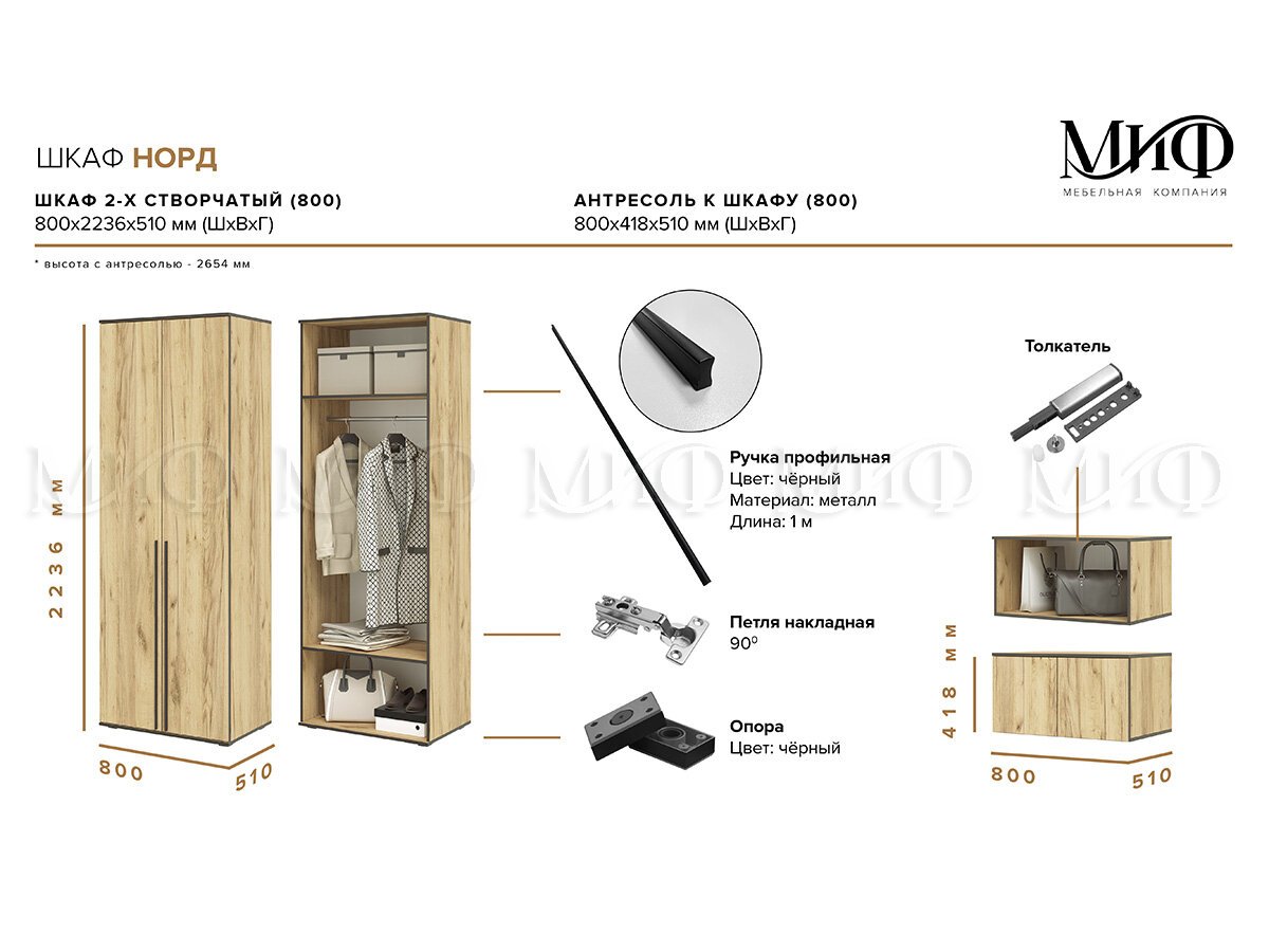 Размеры (Ш*В*Г): 800*2236*510 мм