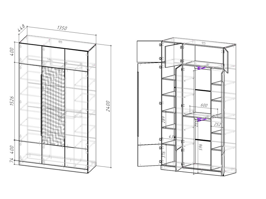 Габаритные размеры: Д.1350 х В.2400 х Г.455 мм