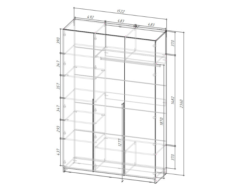 - антресольное отделение (высота 370 мм), поделённую перегородкой на равные расстояния;